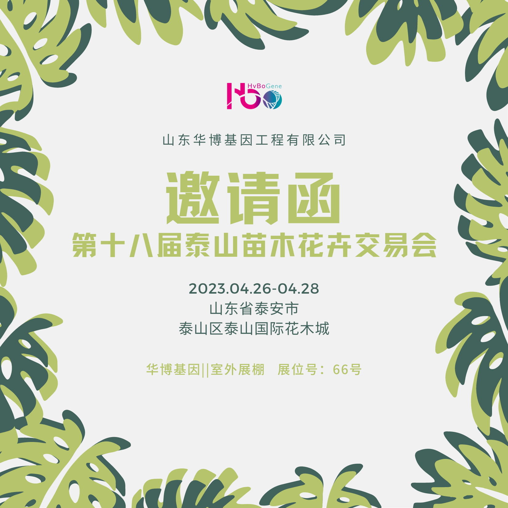2023年4月26日至28日,泰山苗木花卉交易会在泰安泰山国际花木城举办。山东华博基因工程有限公司诚邀您莅临华博基因展位,共襄行业盛会 。