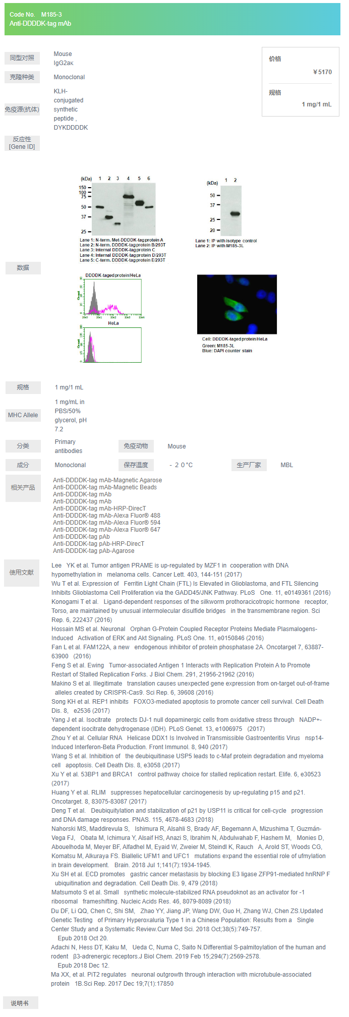 应用范围:WB,IP,FCM,IC,ChIP,Co-IP