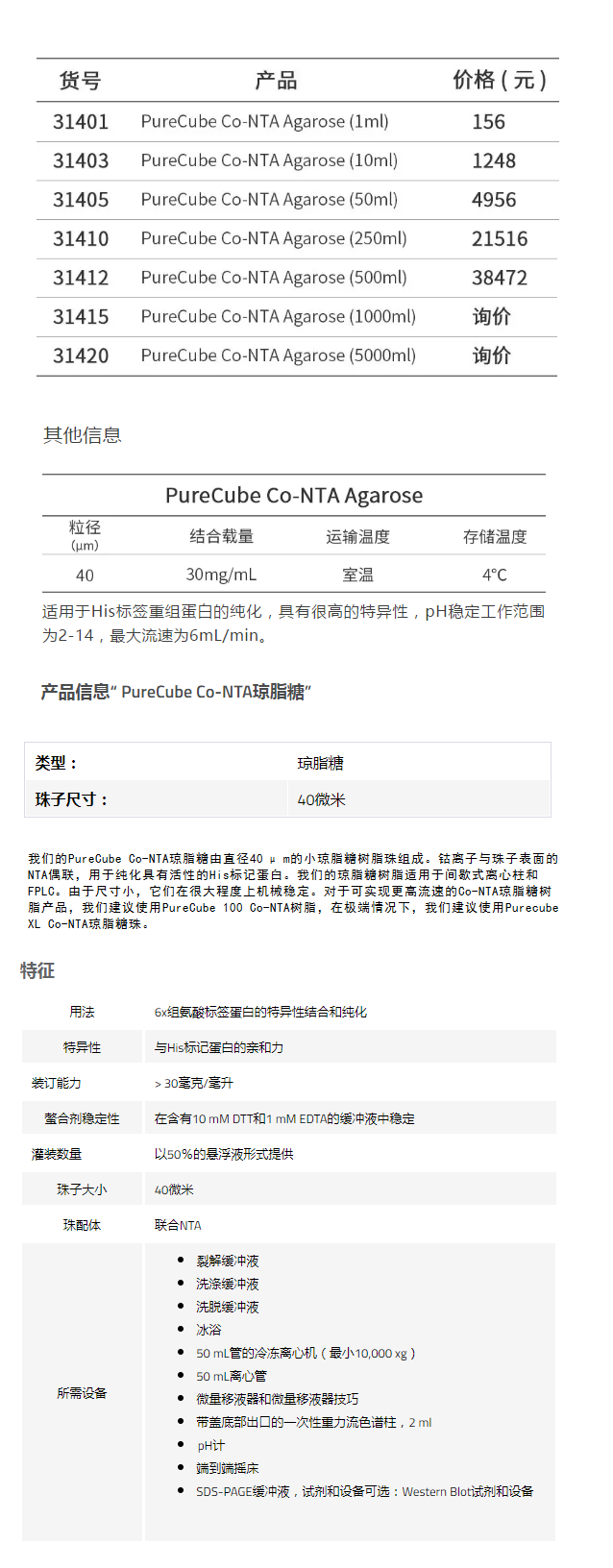 应用范围:结合载量:30mg/mL 粒径:40μm