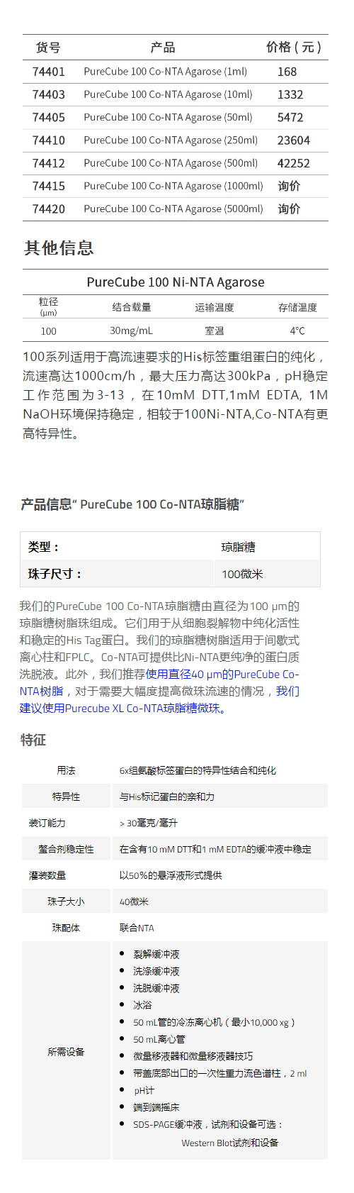 应用范围:结合载量:30mg/mL 粒径:100μm
